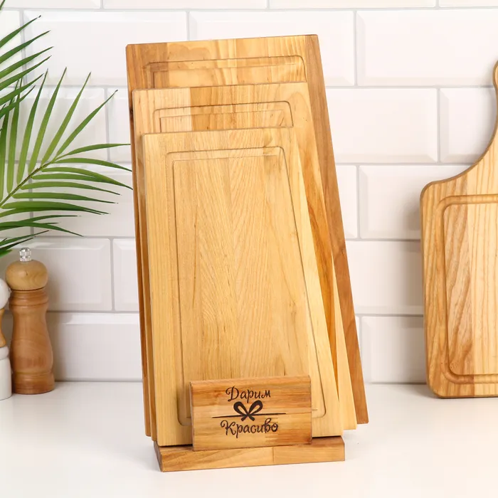 Деревянная разделочная доска — это классика, актуальная во все времена. Она не боится воды и имеет длительный срок службы. Подходит для мяса и овощей: продукты на ней не скользят, что значительно облегчает нарезку и обеспечивает безопасность повару. Также изделие почти не тупит ножи.