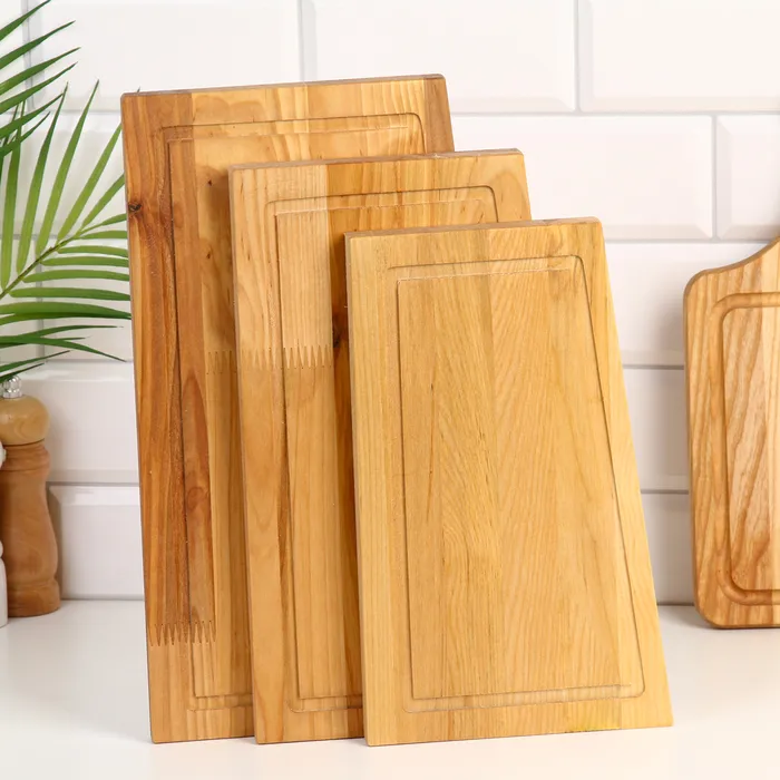 Деревянная разделочная доска — это классика, актуальная во все времена. Она не боится воды и имеет длительный срок службы. Подходит для мяса и овощей: продукты на ней не скользят, что значительно облегчает нарезку и обеспечивает безопасность повару. Также изделие почти не тупит ножи.