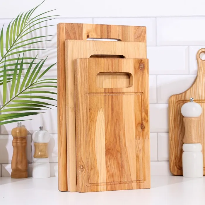 Деревянная разделочная доска — это классика, актуальная во все времена. Она не боится воды и имеет длительный срок службы. Подходит для мяса и овощей: продукты на ней не скользят, что значительно облегчает нарезку и обеспечивает безопасность повару. Также изделие почти не тупит ножи.