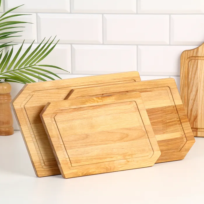 Деревянная разделочная доска — это классика, актуальная во все времена. Она не боится воды и имеет длительный срок службы. Подходит для мяса и овощей: продукты на ней не скользят, что значительно облегчает нарезку и обеспечивает безопасность повару. Также изделие почти не тупит ножи.