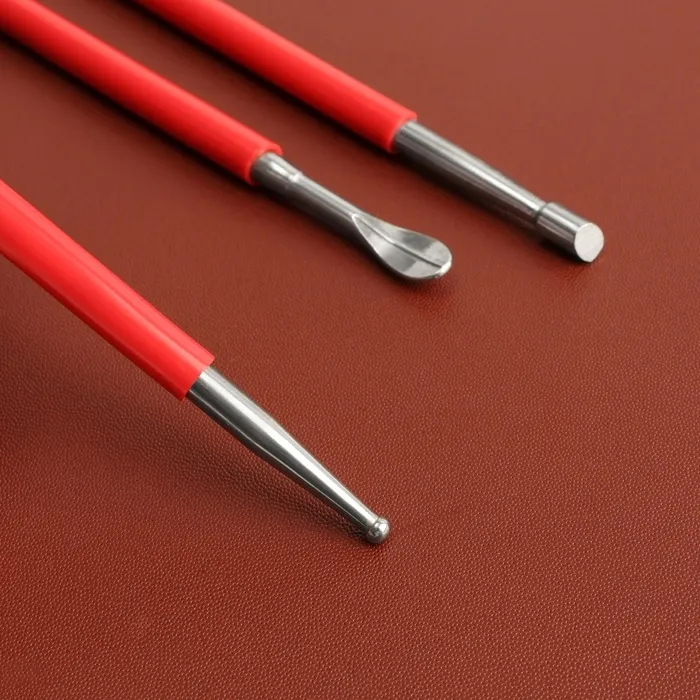 Набор двусторонних кардин предназначен для тиснения, моделирования и обработки кожи и других материалов. С помощью этих инструментов вы сможете выдавливать ровные контуры и линии, обрабатывать деформации, делать разметку, придавать изделиям объём. Благодаря использованию кардин вы получите изделие с гладко обработанным материалом и выраженными контурами.