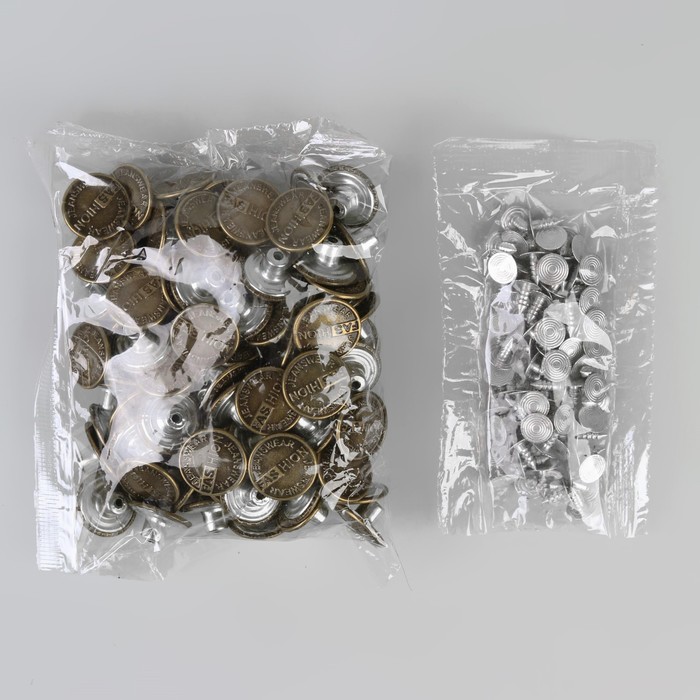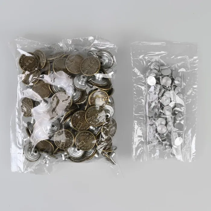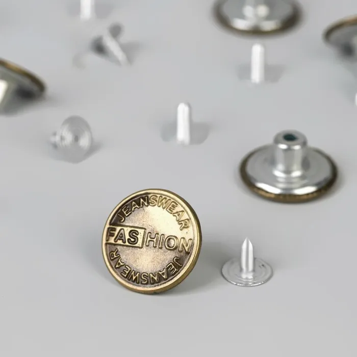Джинсовые пуговицы используются в изготовлении одежды и других изделий из джинсовой ткани. Для грубой ткани нужна надёжная фурнитура. Во-первых, она должна крепиться прямо в материал — нитки не выдержат нагрузок. Во-вторых, от самой пуговицы требуется повышенная прочность, поэтому она изготавливается из металла.