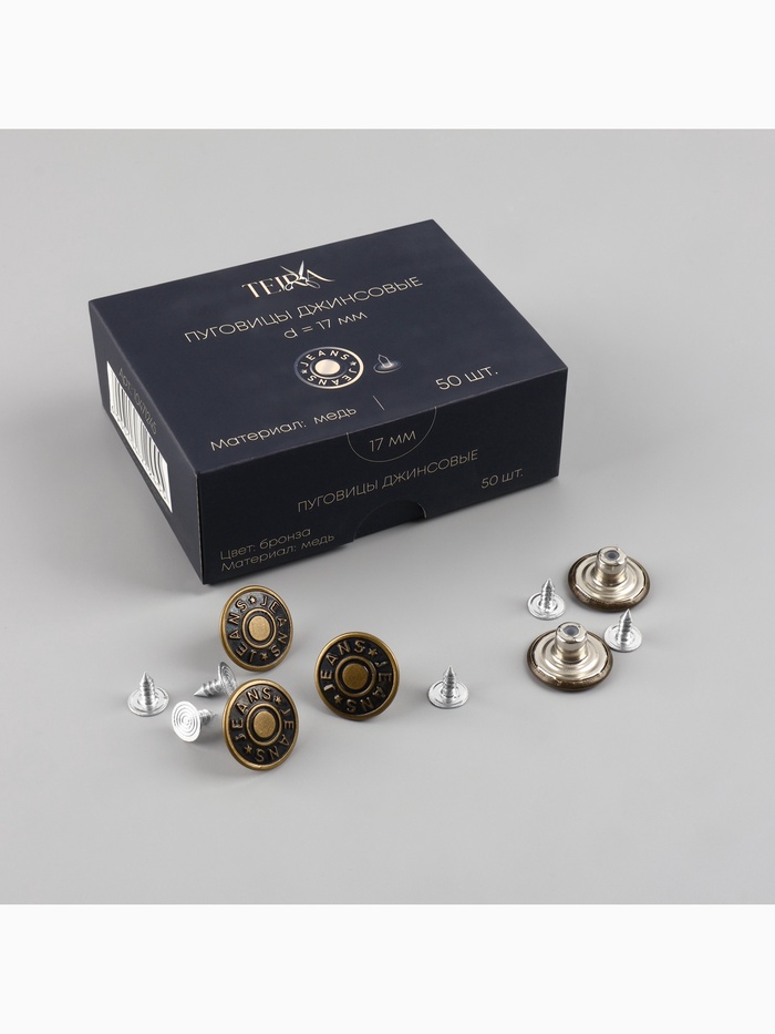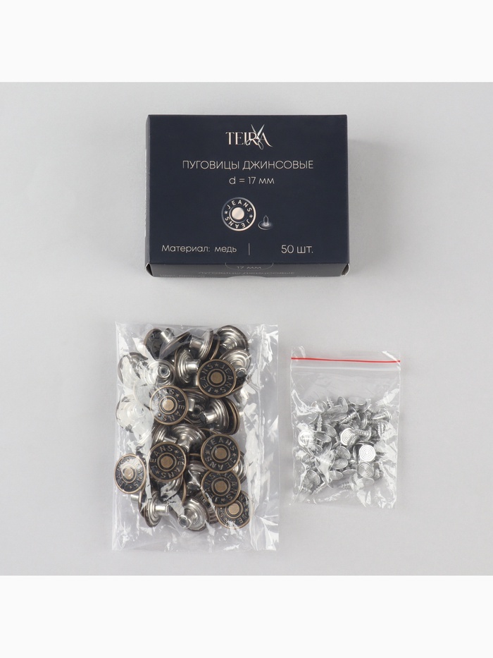 Набор джинсовых пуговиц Jeans TEIRA, 17 мм, медь, 50 шт., цвет бронзовый — Характеристики