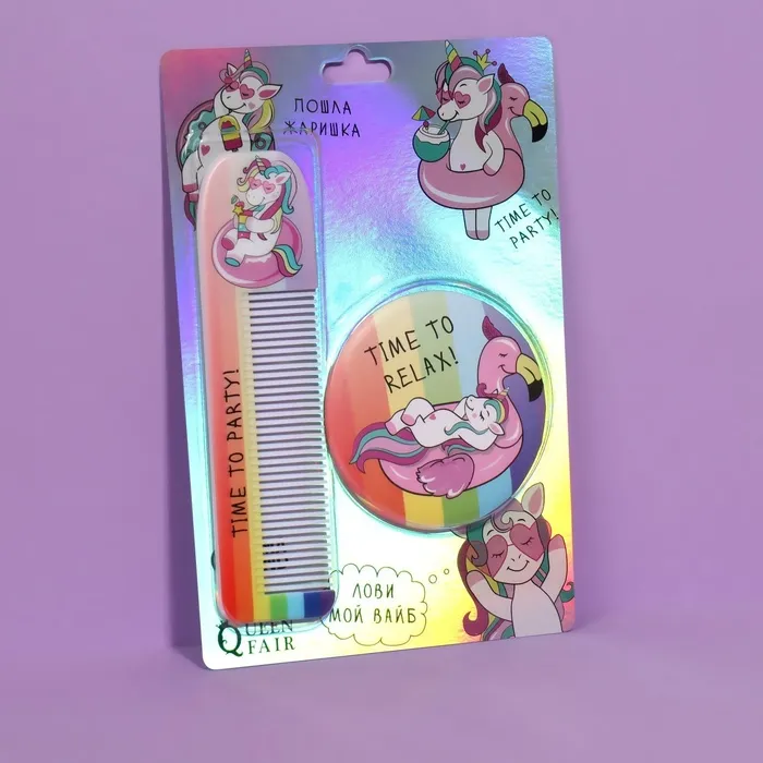 Подарочный набор станет прекрасным сюрпризом на любой праздник. Аксессуары для ухода за собой — это приятный и необходимый подарок для любой девушки. Набор с расчёской и маленьким зеркальцем подарит хорошее настроение и останется приятным напоминанием о вас. Порадуйте своих близких и родных незаменимыми косметическими аксессуарами с уникальным дизайном.