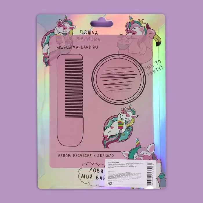 Набор «Единорог», 2 предмета: зеркало, расчёска — Характеристики