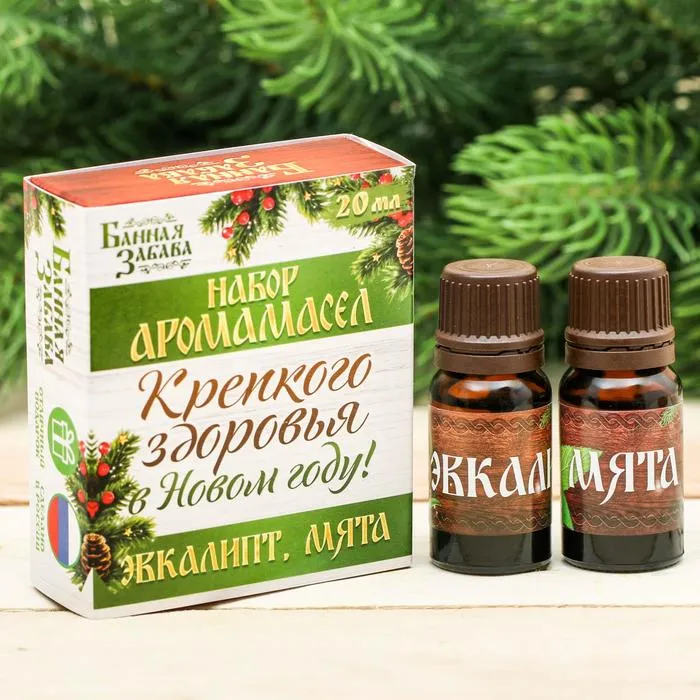 Набор эфирных масел 2 шт по 10 мл "Крепкого здоровья в новом году!" эвкалипт, мята