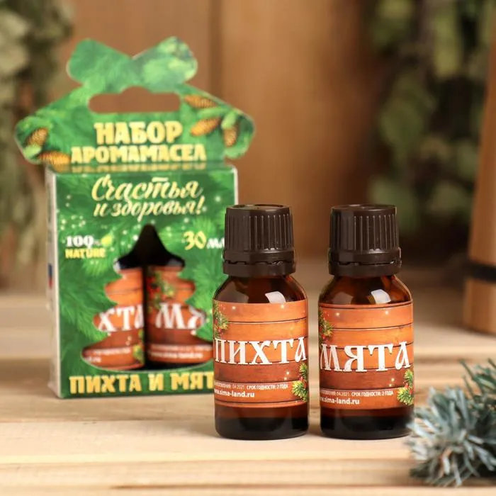 Набор эфирных масел 2 шт по 15 мл, пихта и мята "Счастья и здоровья!"