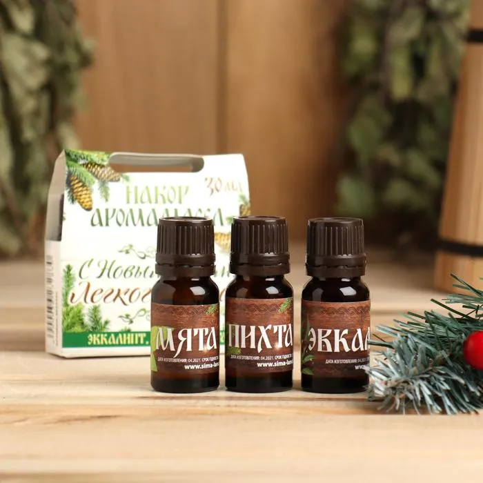 Набор эфирных масел 3 шт по 10 мл "С Новым годом! С легким паром!", эвкалипт, мята, пихта — Характеристики