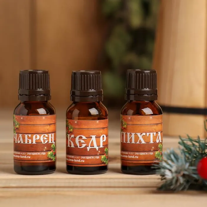 Набор эфирных масел 3 шт по 15 мл, пихта, кедр и чабрец "Жаркой баньки!"