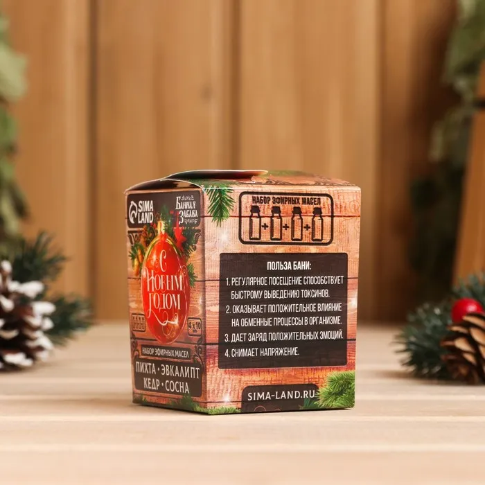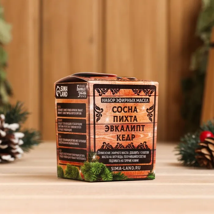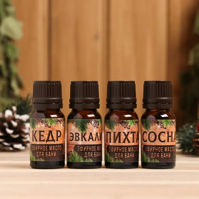 Набор эфирных масел 4 шт по 10 мл"С Новым Годом!", пихта, эвкалипт, кедр, сосна — Характеристики