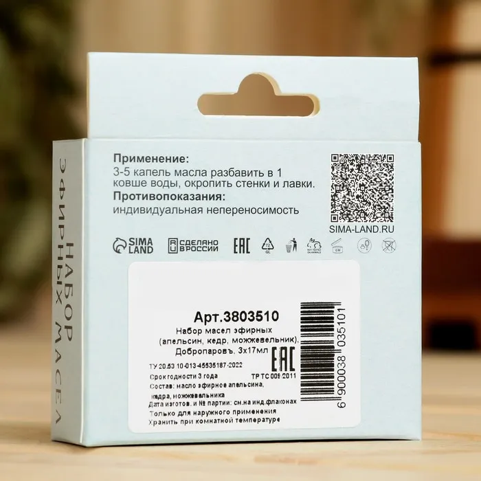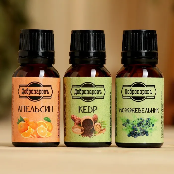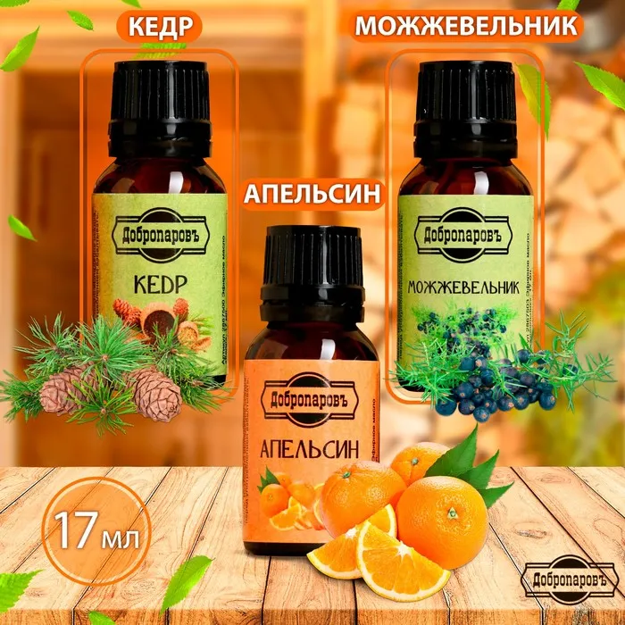 Набор эфирных масел апельсин, кедр, можжевельник, "Добропаровъ", 3 шт по 17 мл — Характеристики
