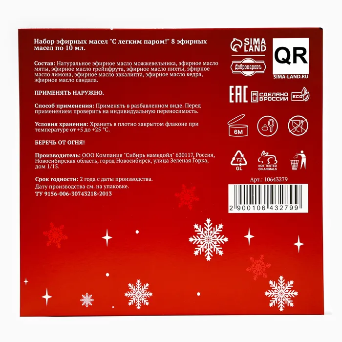 Набор эфирных масел "С легким паром!" 8 эфирных масел по 10 мл — Характеристики