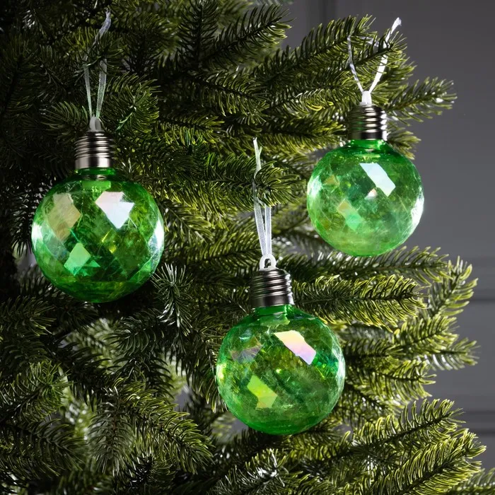 Набор елочных шаров «Акценты зеленого», d=7 см, 3 LED, 3 шт., батарейки AG13×9 (нет в комплекте), свечение теплое белое — Характеристики