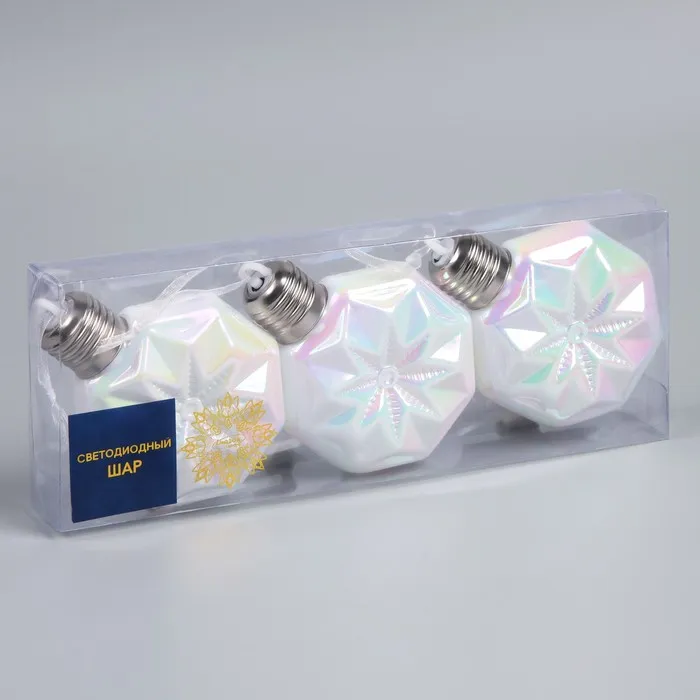 Набор елочных шаров «Изморозь», d=7.5 см, 3 LED, 3 шт., батарейки AG13×9 (нет в комплекте), свечение тёплое белое — Характеристики
