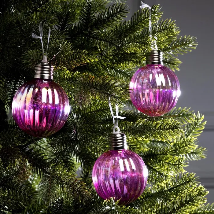 Набор елочных шаров «Розовые грани», d=7 см, 3 LED, 3 шт., батарейки AG13×9 (нет в комплекте), Свечение тёплое белое — Характеристики