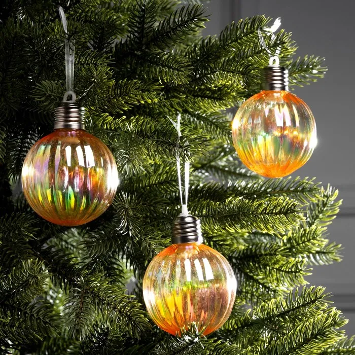 Набор елочных шаров «Золотистые грани», d=7 см, 3 LED, 3 шт., батарейки AG13×9 (нет в комплекте), свечение тёплое белое — Характеристики