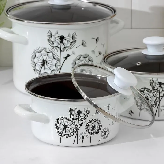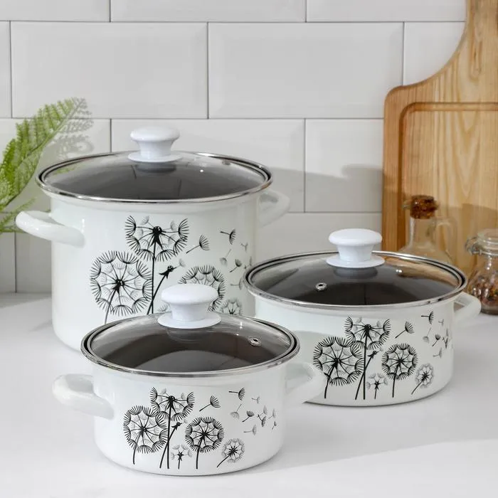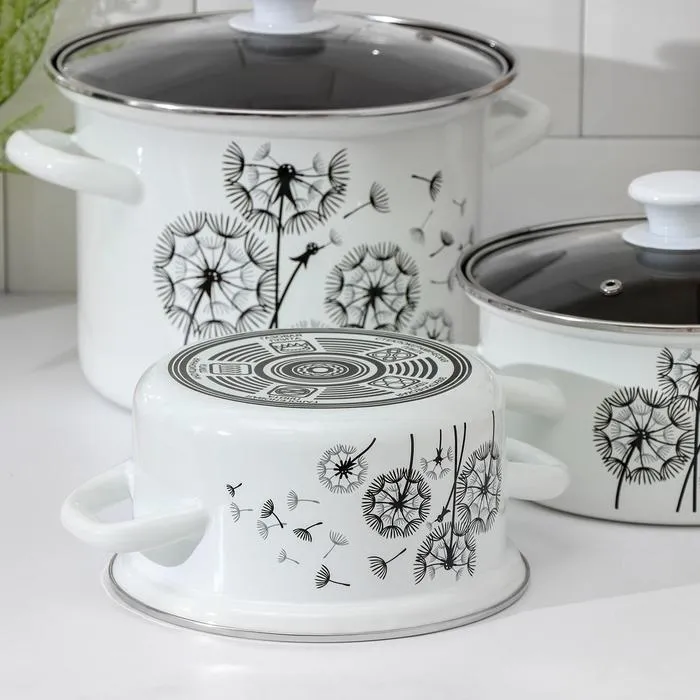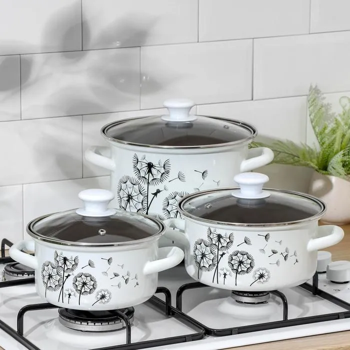 Все кастрюли выполнены из высококачественной стали и покрыты прочной эмалью, которая защищает посуду от коррозии и обеспечивает её долговечность. Эмалевое покрытие легко моется и не впитывает запахи, что делает набор идеальным выбором для приготовления различных блюд.