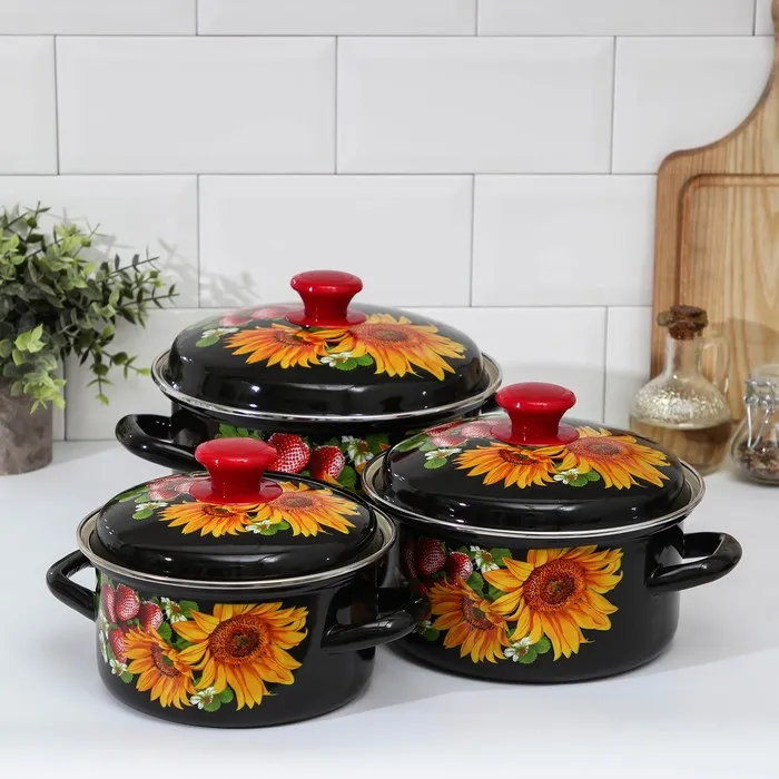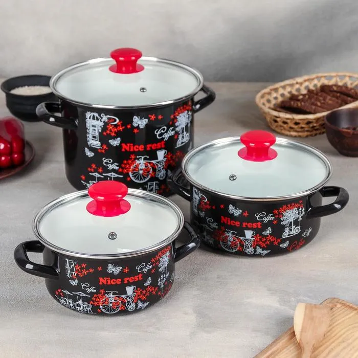 Набор эмалированных кастрюль «Армель», 3 предмета: 2 л, 3 л, 4 л, индукция, цвет белый — Характеристики