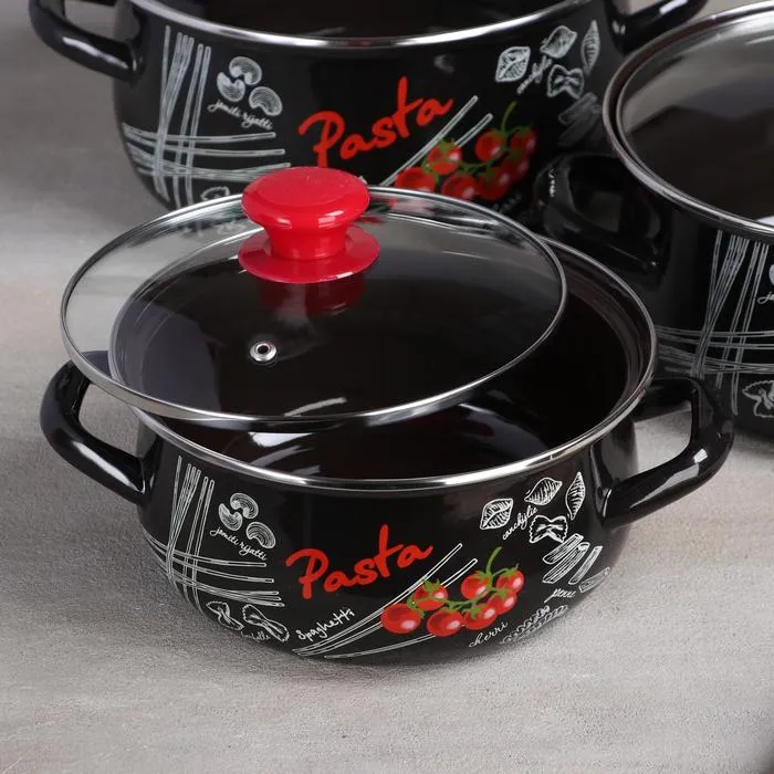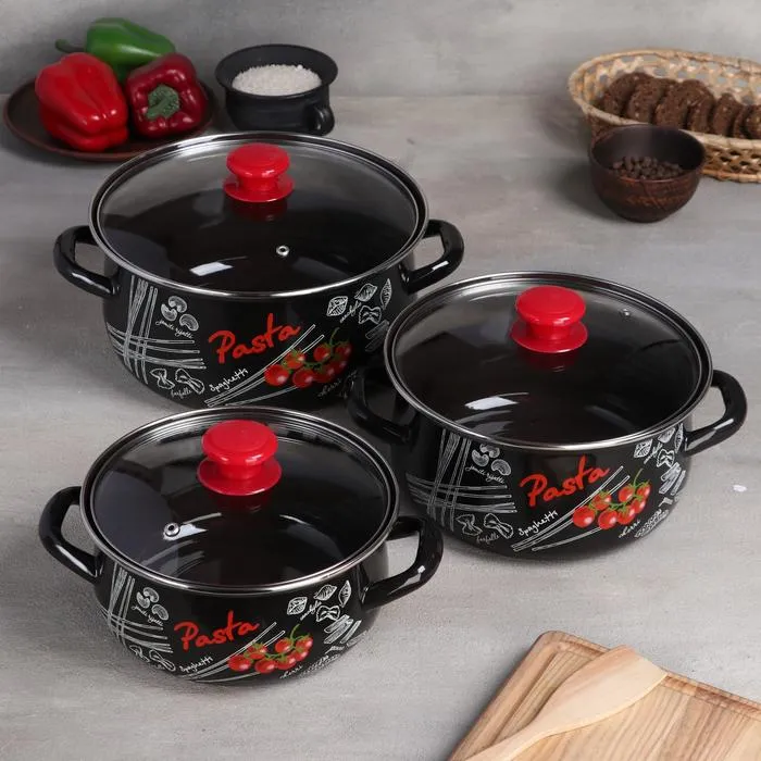 Набор эмалированных кастрюль «Болоньезе», 3 предмета: 2 л, 3 л, 4 л, d=20,5 см, 23 см, 26 см, индукция