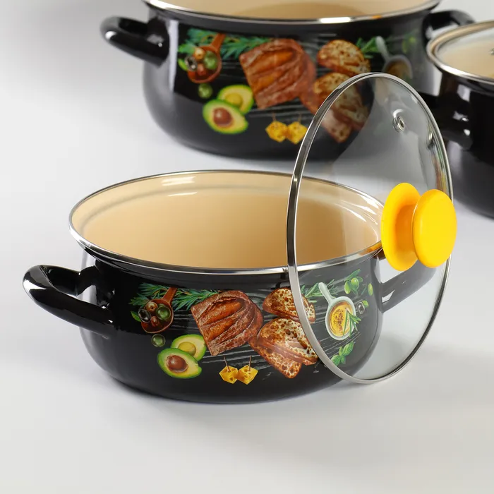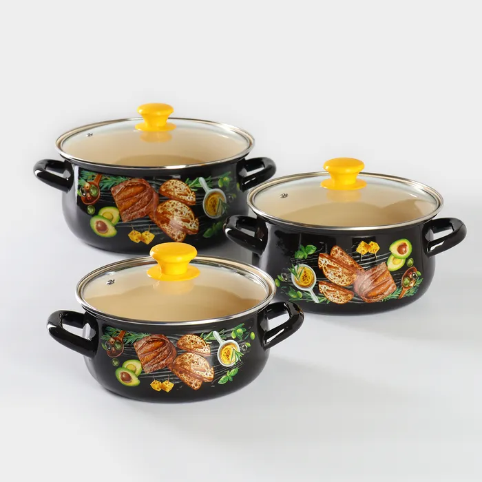 Набор эмалированных кастрюль «Чиабатта», 3 предмета: 6 2 л, 3 л, 4 л, индукция — Характеристики