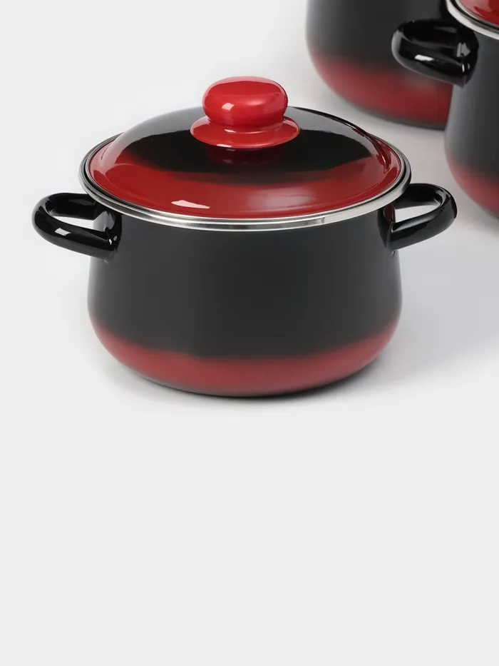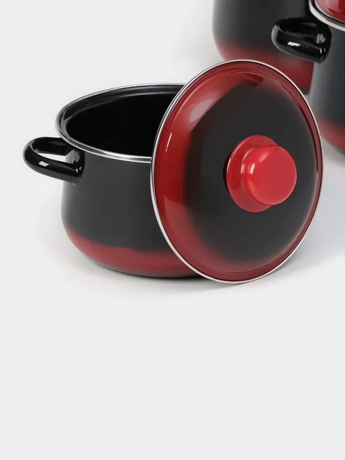 Набор эмалированных кастрюль «Кармен», 3 предмета: 2 л, 4 л, 5,5 л, индукция, цвет чёрно-красный — Характеристики