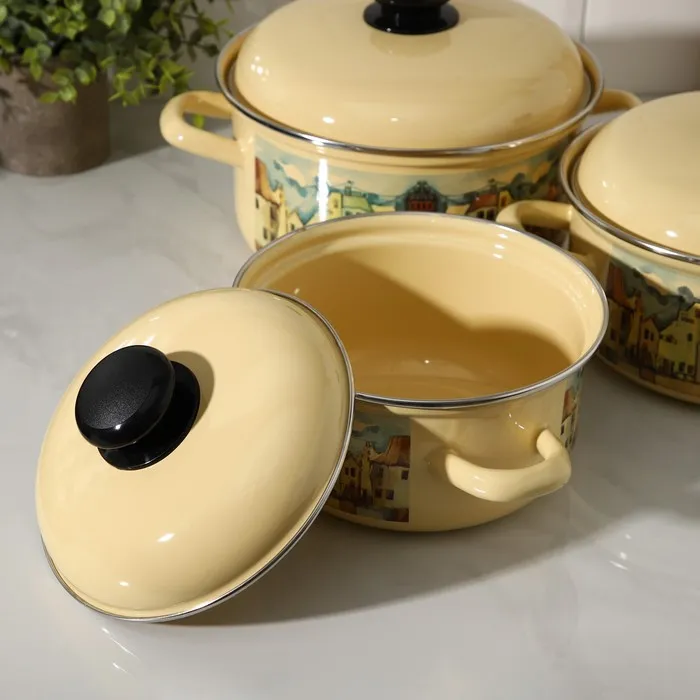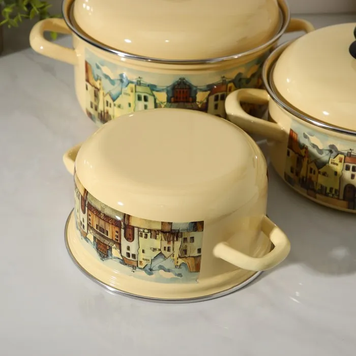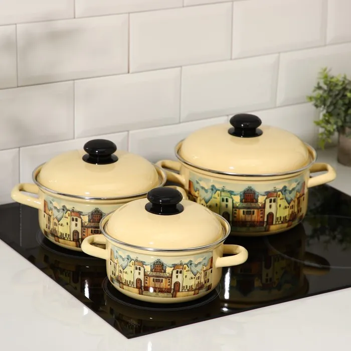 Набор эмалированных кастрюль «Старый город», 3 предмета: 1,5 л, 2 л, 3 л, индукция — Характеристики