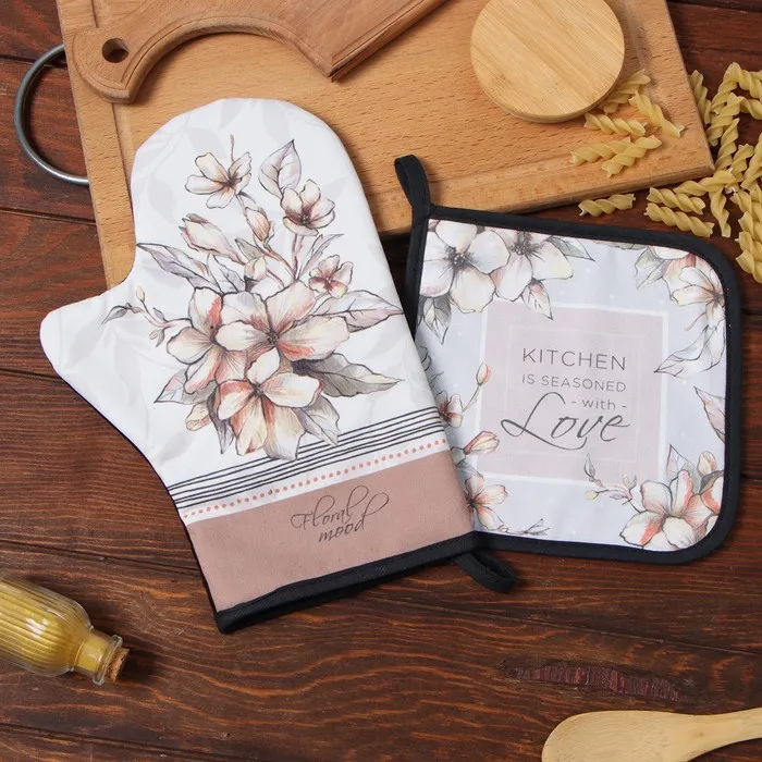 Набор «Этель» Harmony: варежка-прихватка 20×27 см, прихватка 19×19 см, 100% хлопок, рогожка 186 г/м² — Характеристики