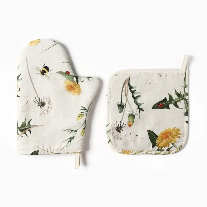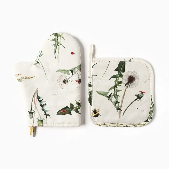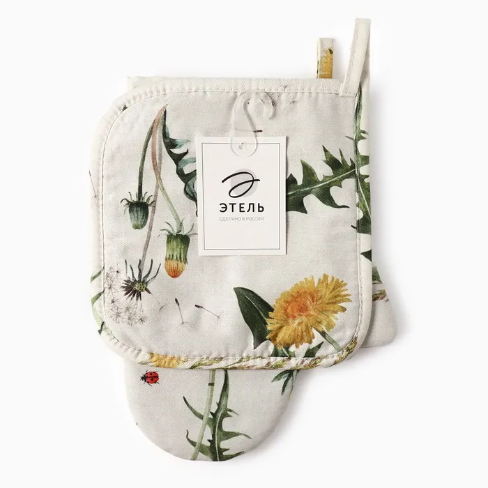 Набор Этель «Одуванчики»: варежка-прихватка 20×27 см, прихватка 19×19 см, 100% хлопок, саржа 178 г/м² — Характеристики