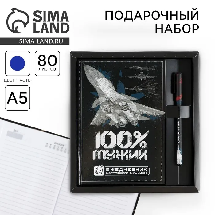 Набор ежедневник А5, 80 л в твердой обложке и ручка «100% мужик» — Характеристики