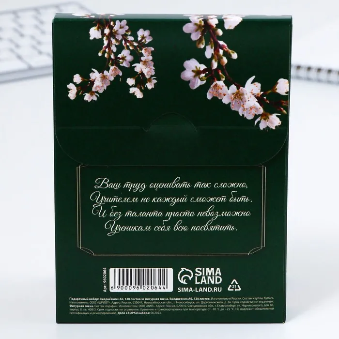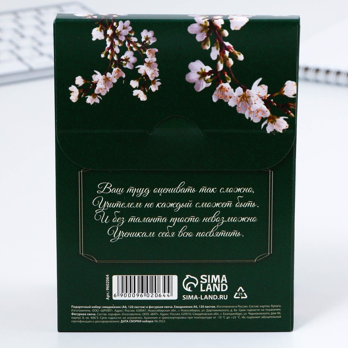 Набор: ежедневник А6, 120 листов и фигурная свеча «Любимому учителю» — Характеристики