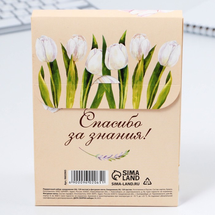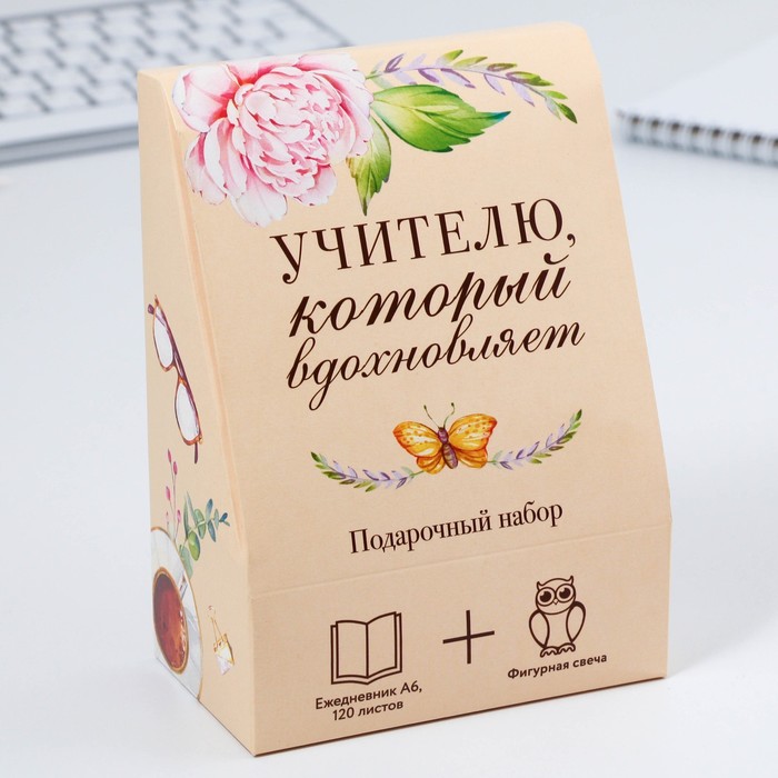 Набор: ежедневник А6, 120 листов и фигурная свеча «Учителю, который вдохновляет» — Характеристики