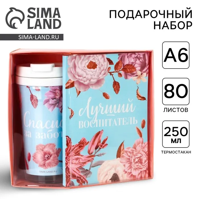 Набор: ежедневник А6, 80 листов и термостакан 250 мл «Воспитателю: Лучший воспитатель» — Характеристики