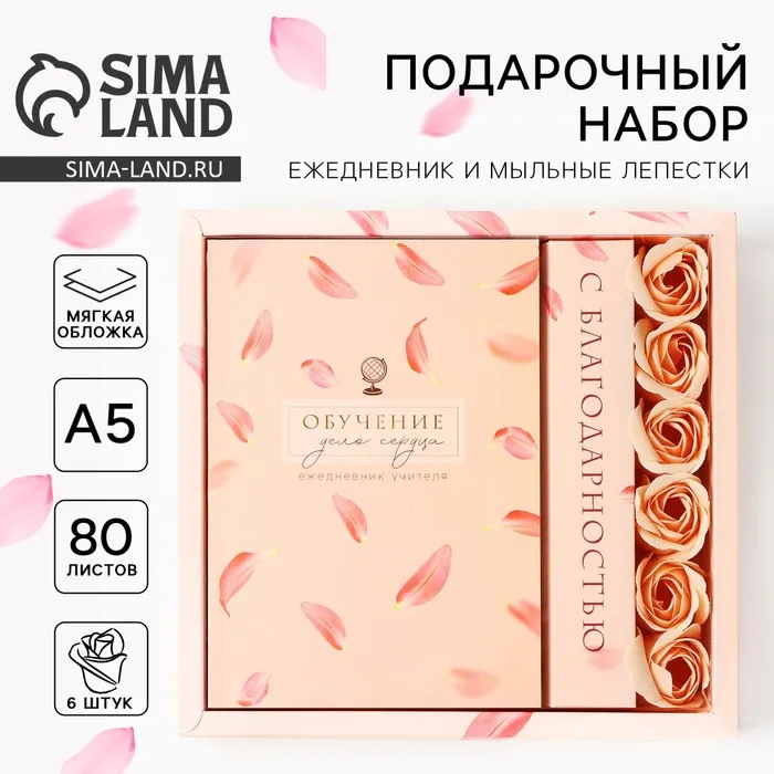 Набор: ежедневник и мыльные лепестки «Учителю: Обучение - дело сердца» — Характеристики