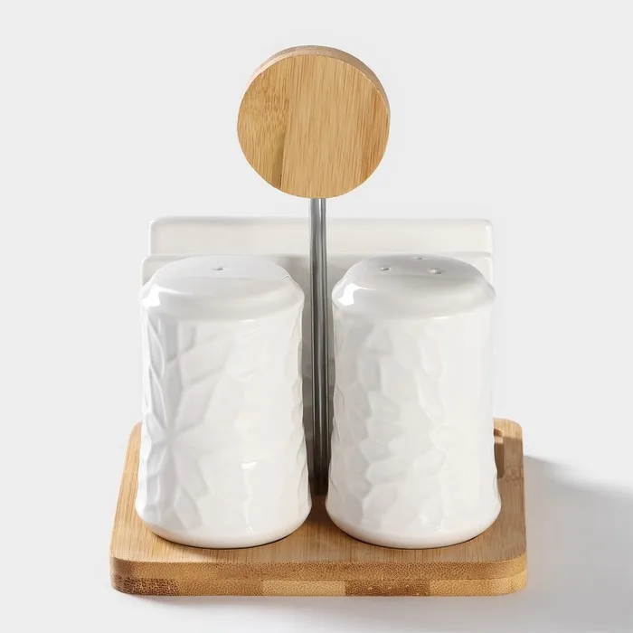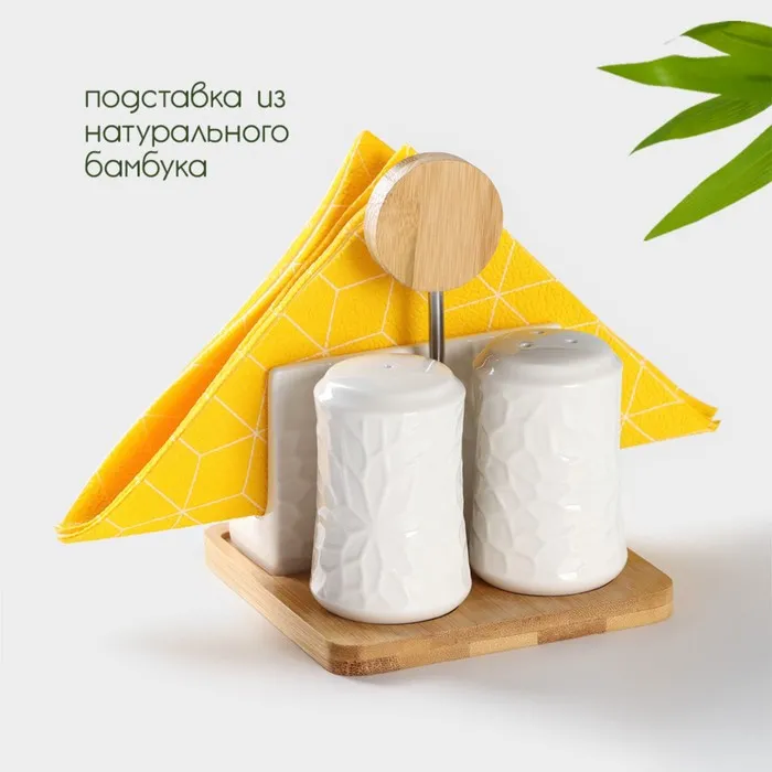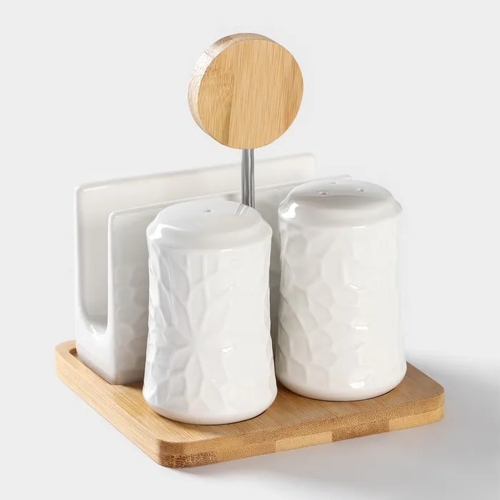 Набор фарфоровый для специй BellaTenero, 4 предмета: солонка, перечница, салфетница, подставка-держатель, белый — Характеристики