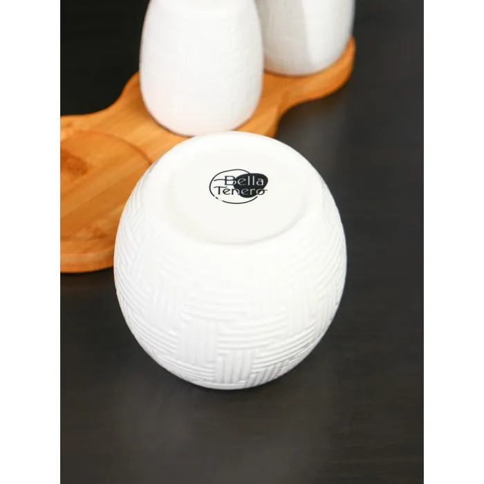 Набор для специй BellaTenero изготовлен из качественного фарфора. Кухонные изделия из фарфора отличаются прочностью и надёжностью, устойчивы к появлению царапин и резким перепадам температур. Благодаря оригинальному дизайну набор отлично впишется в интерьер вашей кухни и станет настоящей изюминкой при сервировке.
