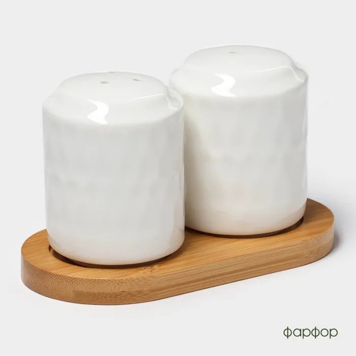 Набор фарфоровый для специй на деревянной подставке BellaTenero «Герда», 2 предмета: солонка 85 мл, перечница 85 мл, белый — Характеристики