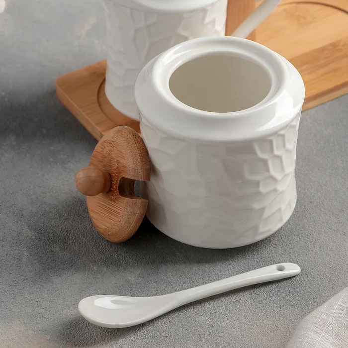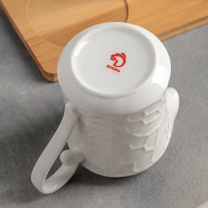 Набор фарфоровый сервировочный на деревянной подставке Доляна «Кракле», 2 предмета: молочник 170 мл, сахарница с ложкой, цвет белый — Характеристики