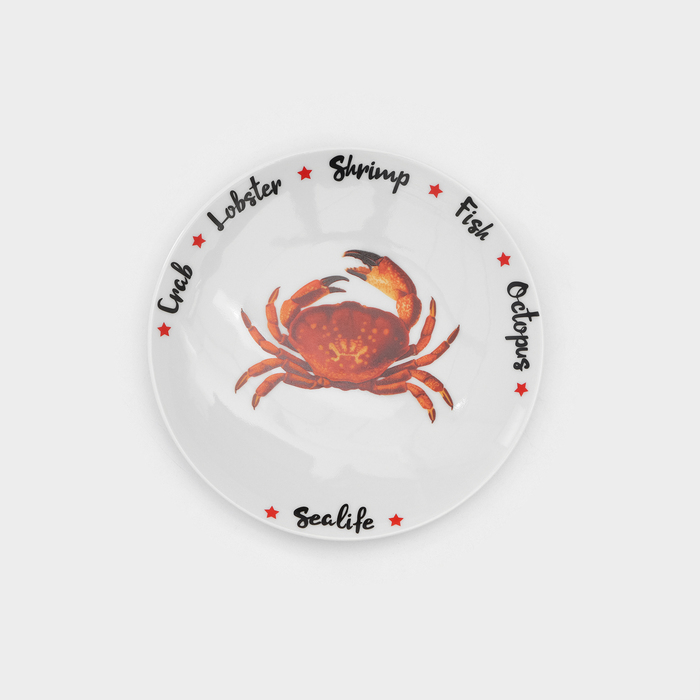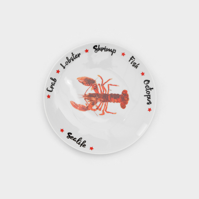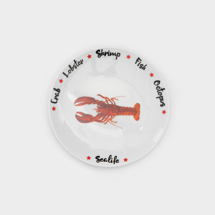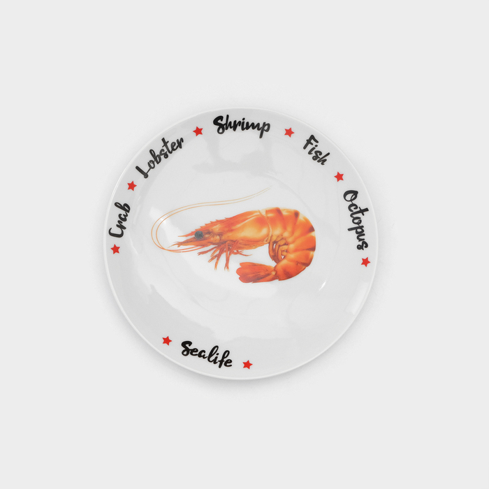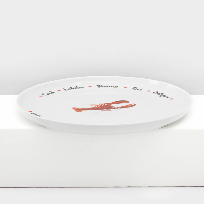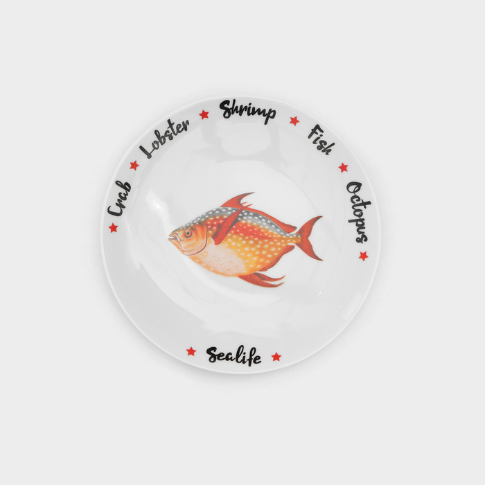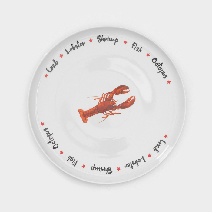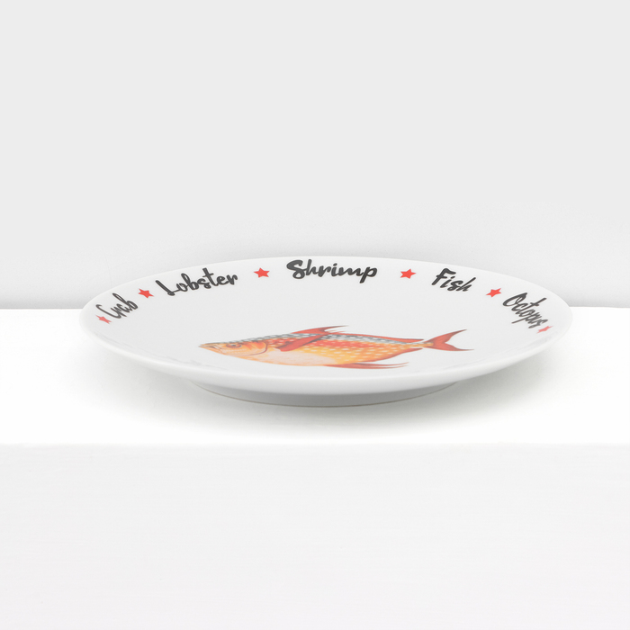Набор фарфоровых тарелок для пиццы Sealife, 7 предметов, рисунок микс, цвет белый — Характеристики