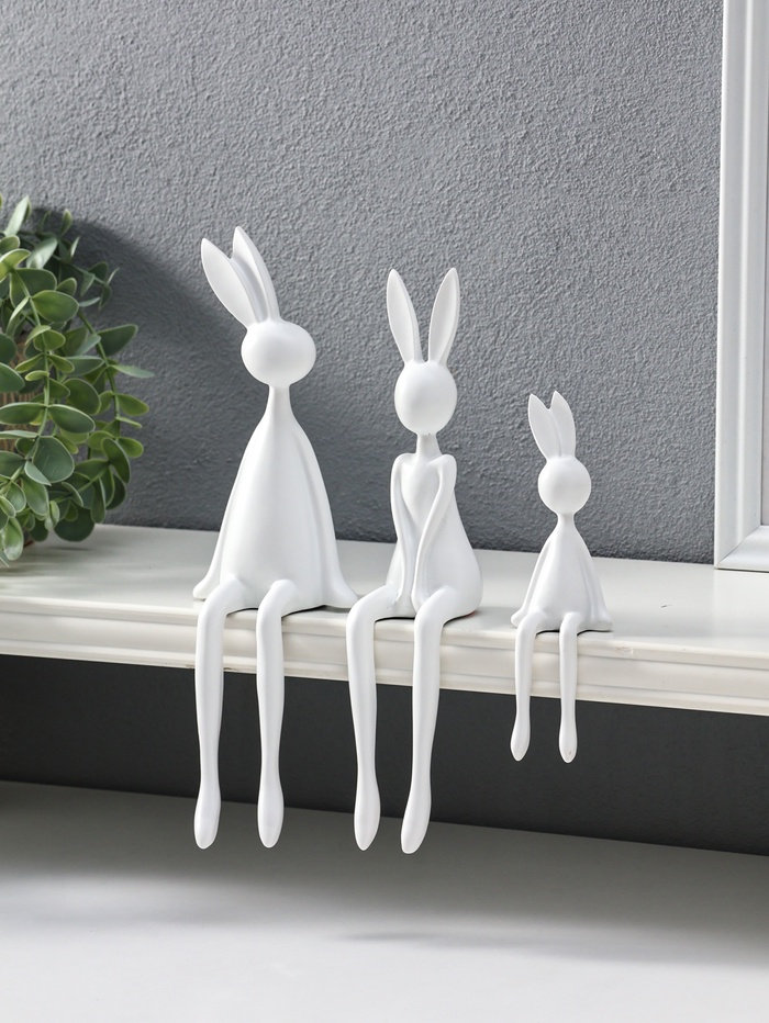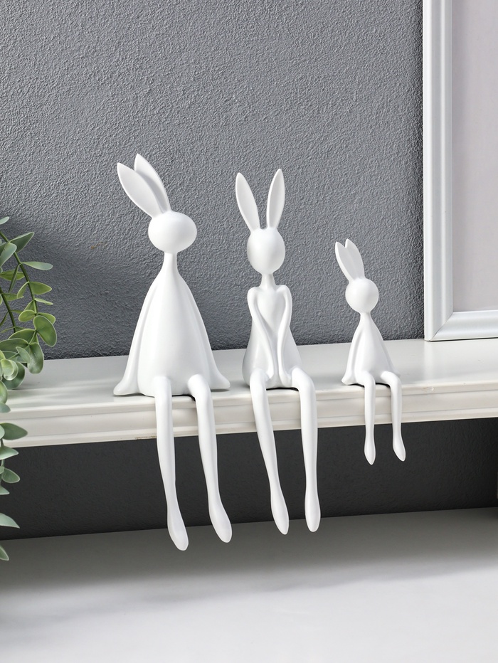 Набор фигур настольных полистоун «Семья зайцев», белый, 3 шт., на полку — Характеристики