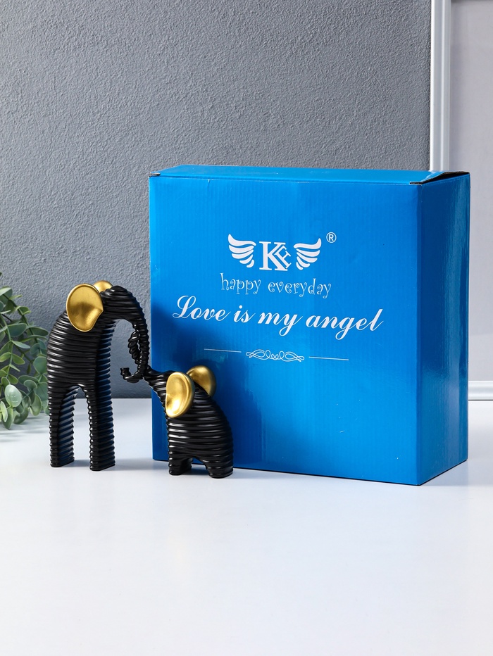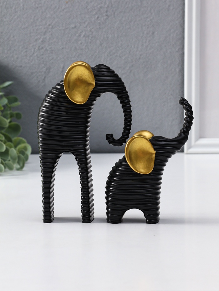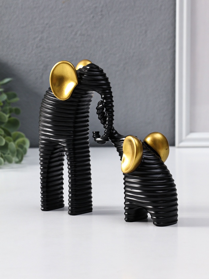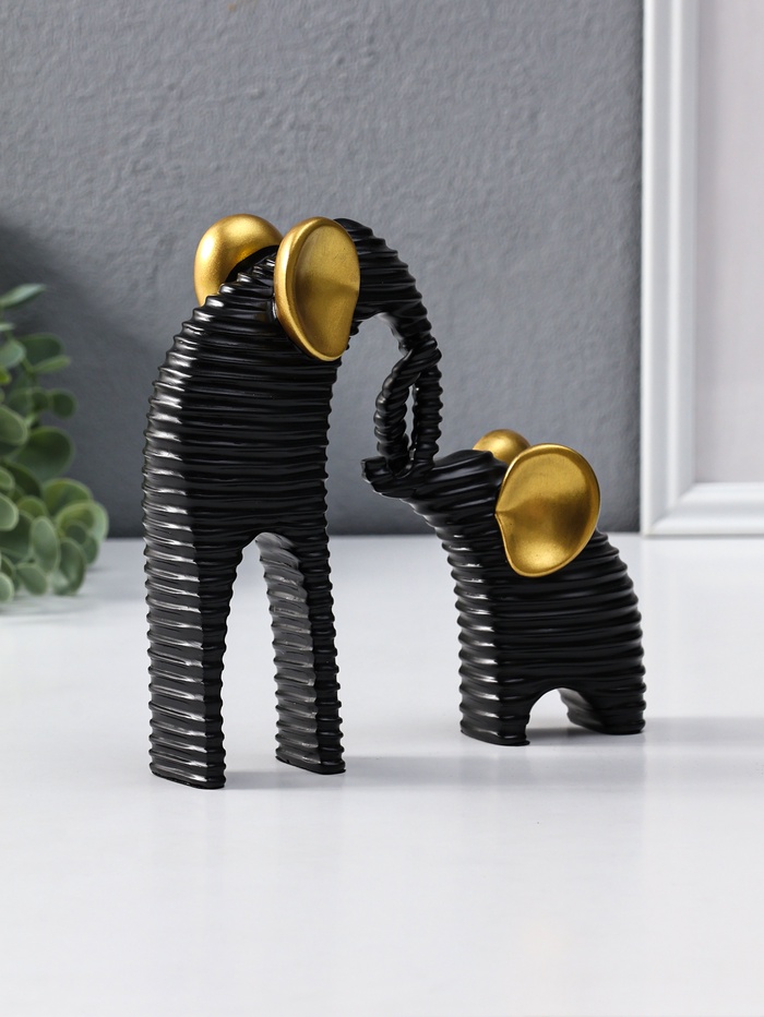 Набор фигур полистоун «Слон со слонёнком. Гофре», чёрный с золотом, 2 шт., 5.5×16.5×16.5 см — Характеристики