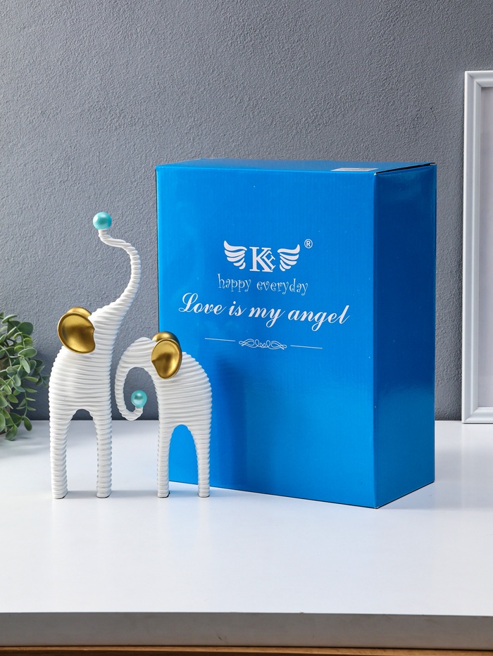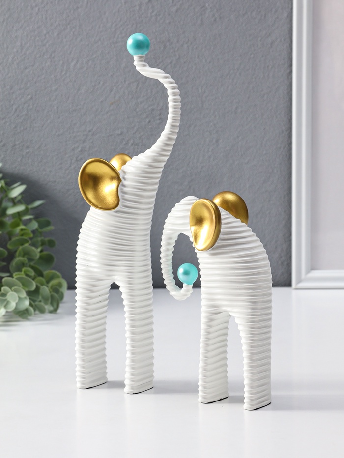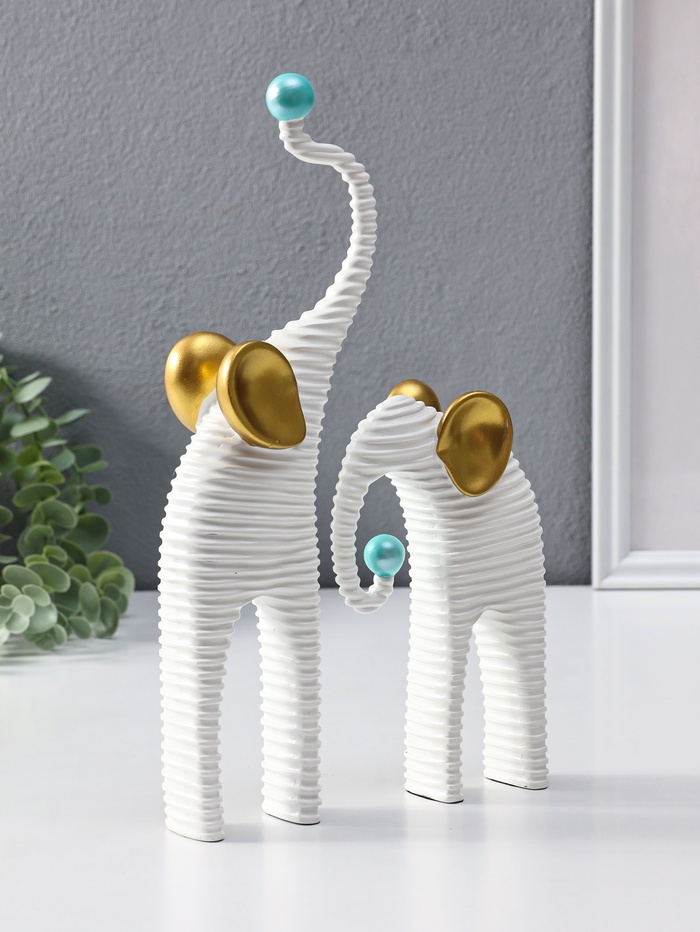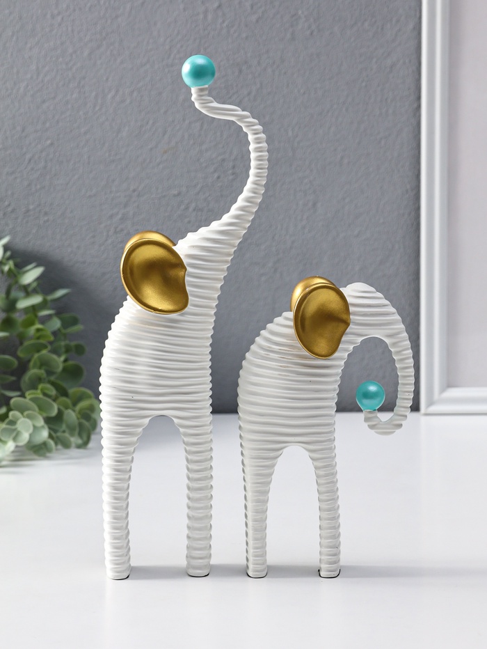 Набор фигур «Слоны. Гофре», белый с золотом, 2 шт., полистоун — Характеристики