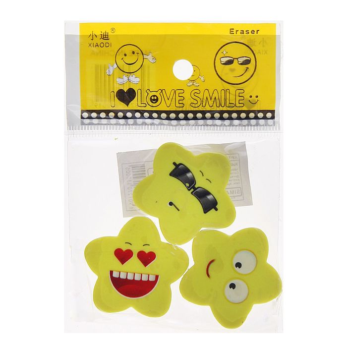Набор фигурных ластиков "Смайл", 3 штуки, в блистере, МИКС — Характеристики