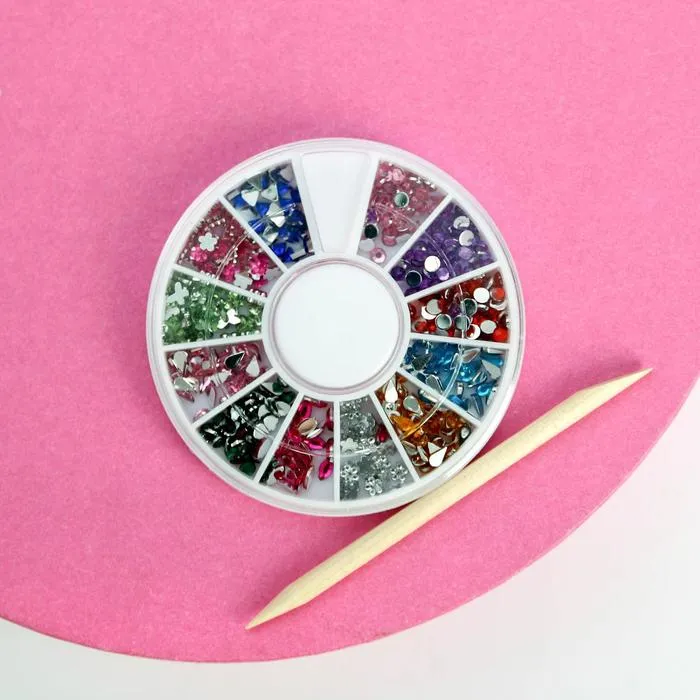 Набор фигурных страз для декора ногтей (12 цветов) и апельсиновая палочка «Будь в тренде!»