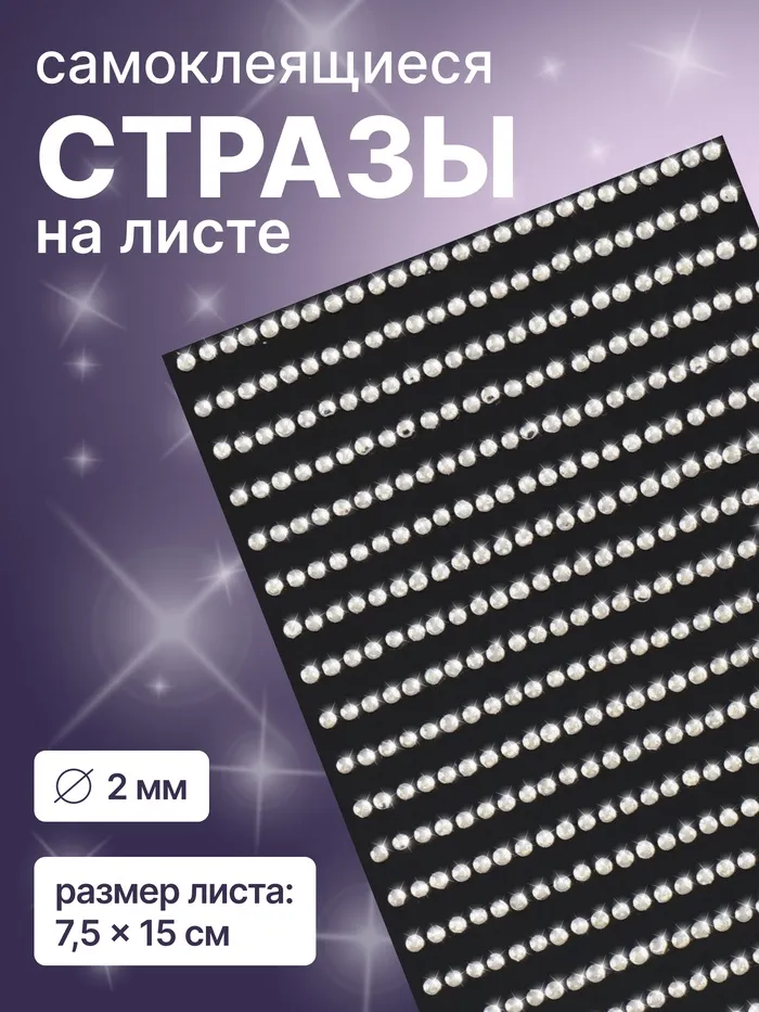 Стразы для декора, на клеевой основе, 7.5×15 см, d=2 мм, цвет серебристый
