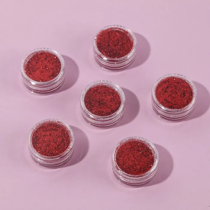 Набор блесток для декора, мелкий помол, алый, 6 штук