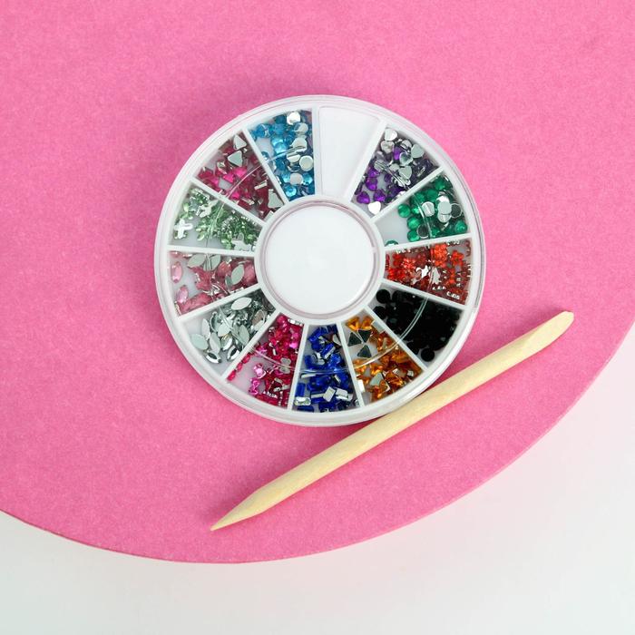 Набор фигурных страз для декора ногтей (12 цветов) и апельсиновая палочка «Будь в тренде!»