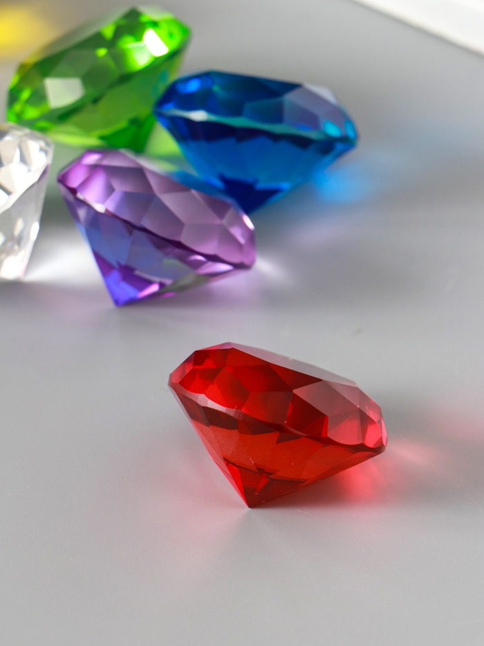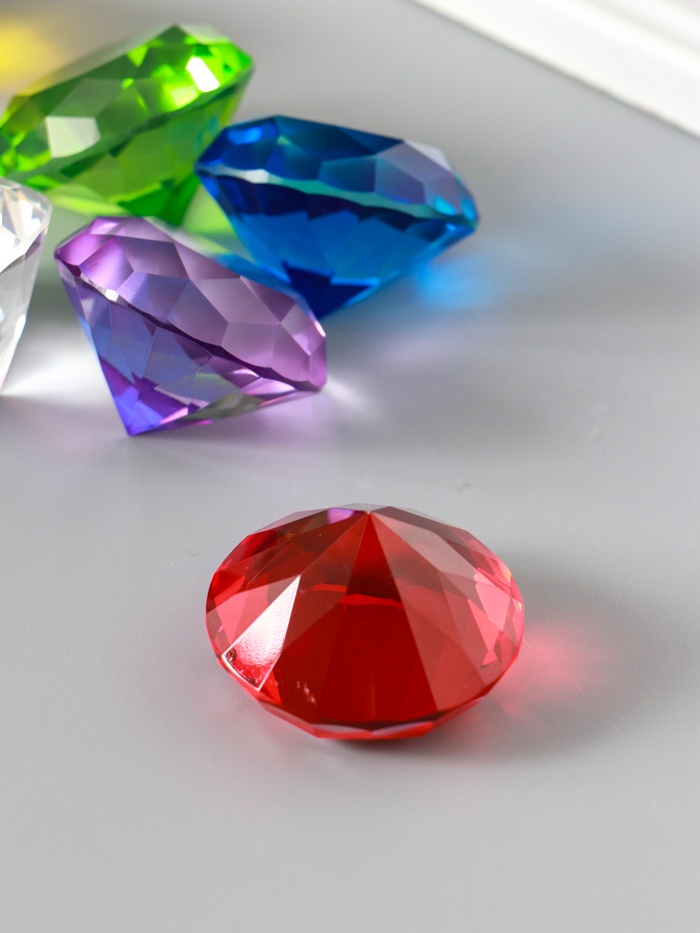 Стеклянные бриллианты служат элегантным декором для свадеб, дней рождений или корпоративных мероприятий. Их сверкающие грани красиво преломляют свет, создавая праздничные блики в интерьере. Компактный набор удобно хранить и использовать многократно для разных событий.