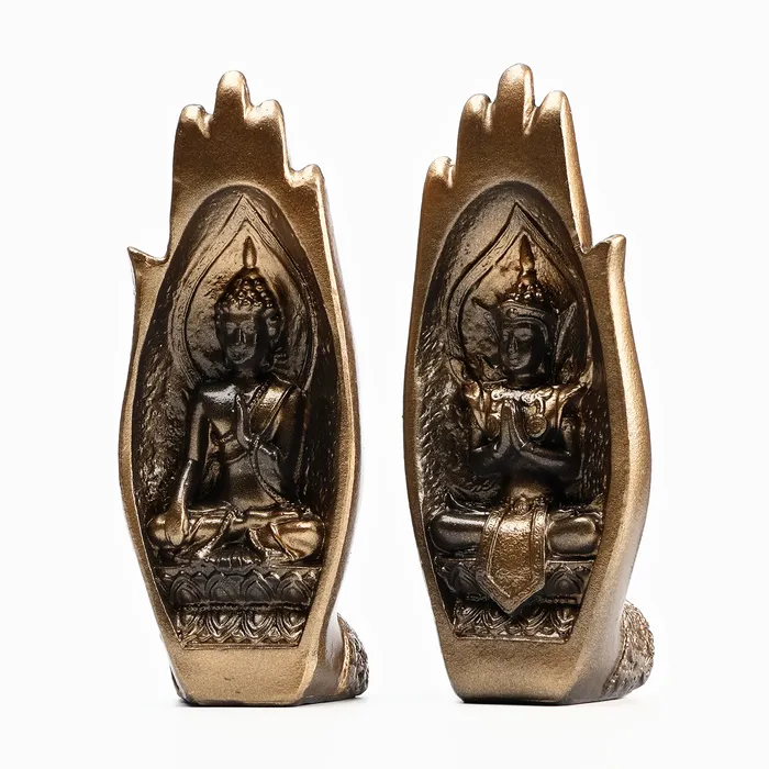 Набор фигурок гипс «Будда в руках», держатель для книг, чёрная-бронза, 21 см