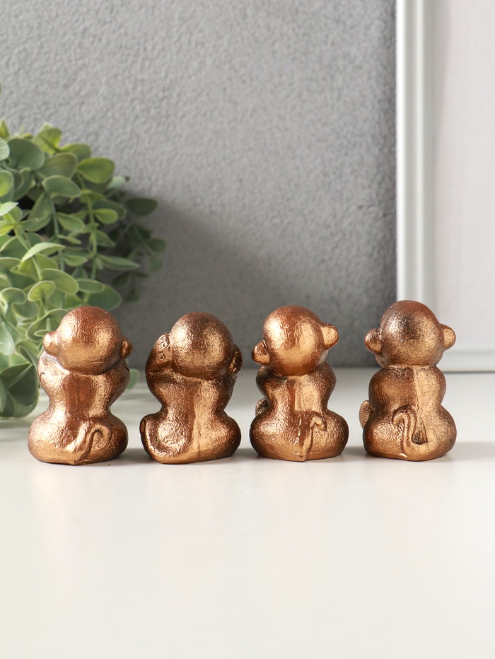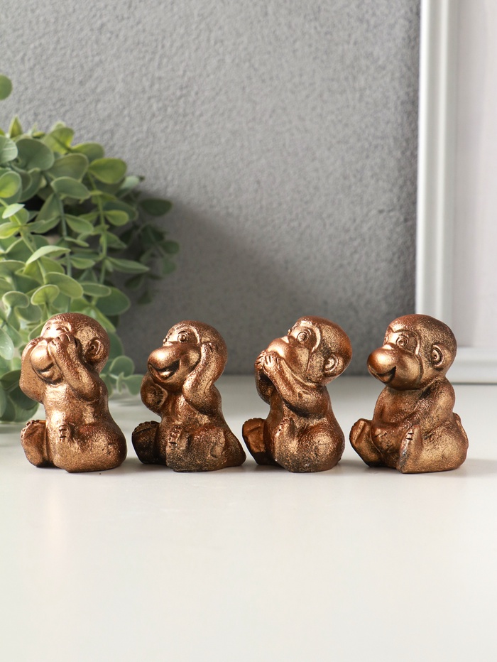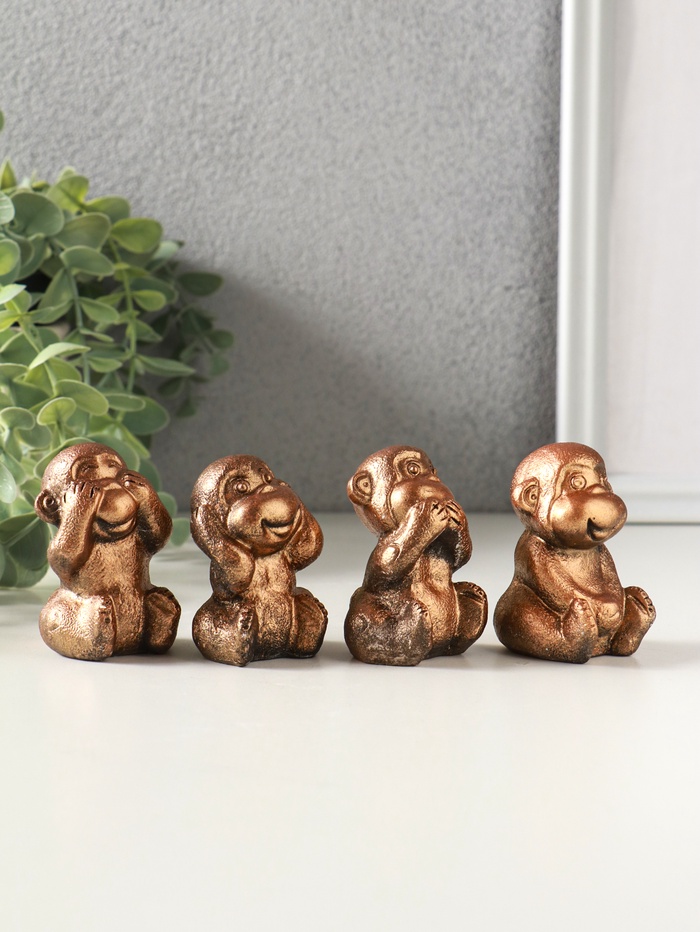 Набор фигурок гипс «Обезьянки ничего не вижу не слышу не скажу», 4 шт., 6 см, под бронзу — Характеристики