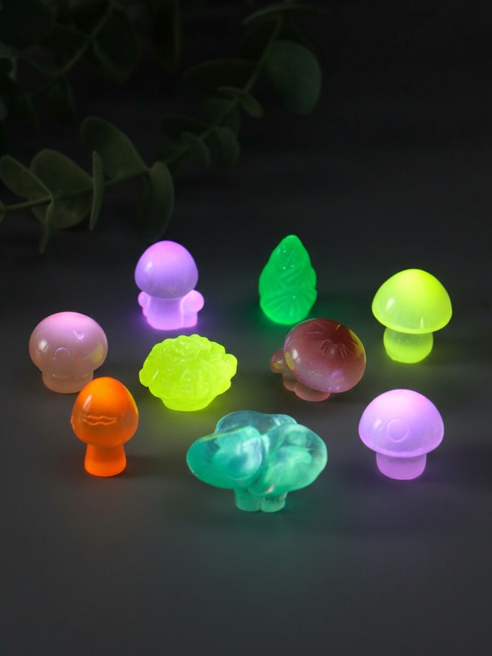 Эти светящиеся по УФ-лучами грибочки создают волшебную атмосферу в любом пространстве. Набор из девяти миниатюрных фигурок станет ярким акцентом для творческих проектов и домашнего декора.